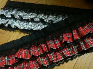 ギャザーレースと布を交互に重ねてみました